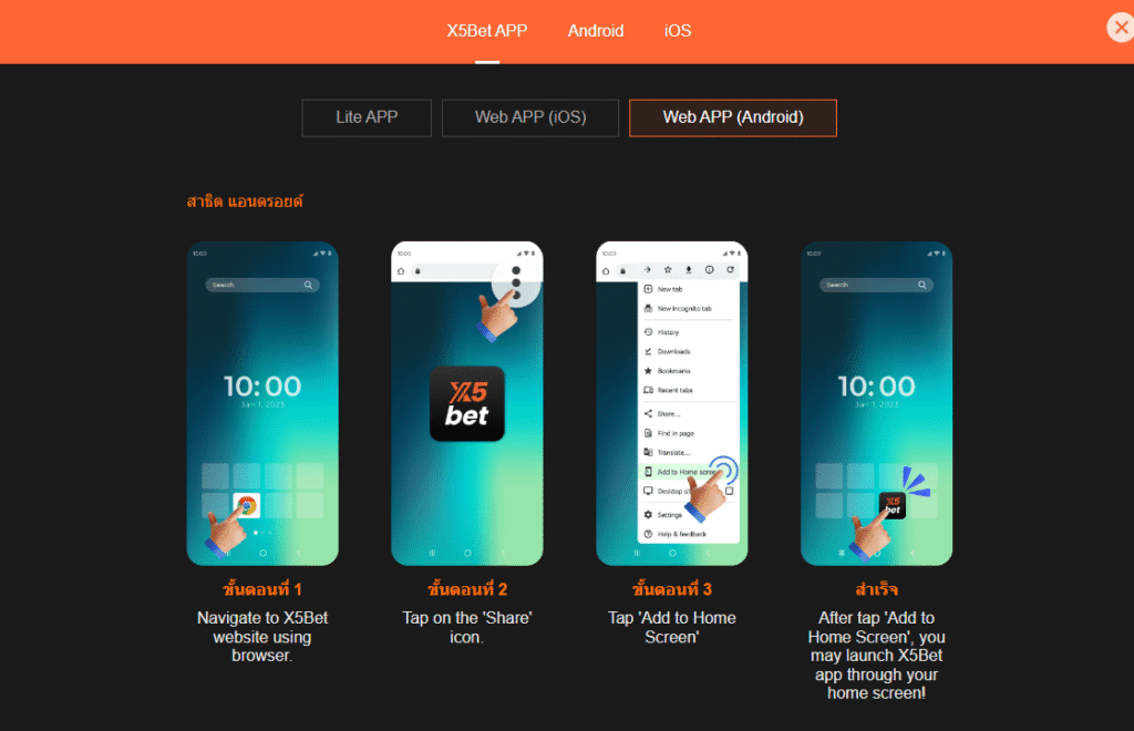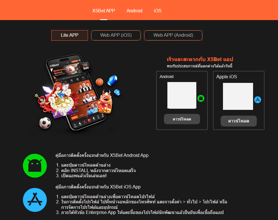 วิธีดาวน์โหลดแอปพลิเคชันมือถือ x5bet